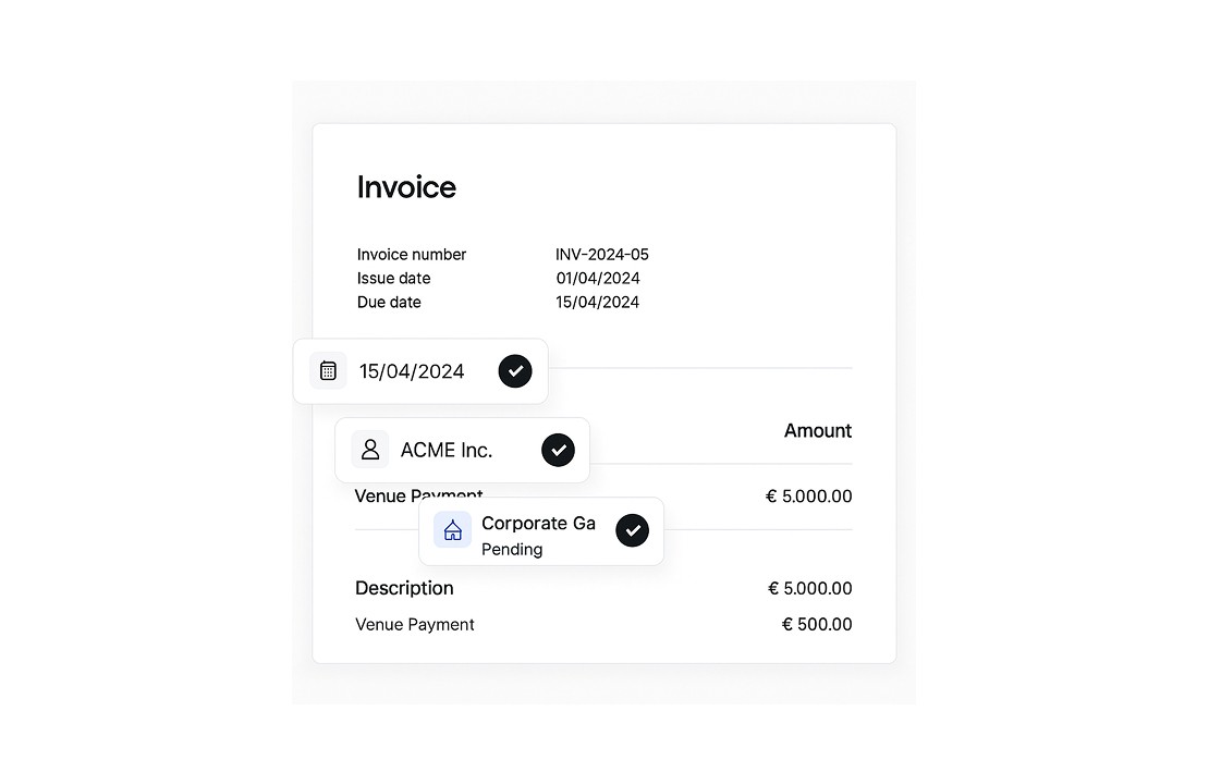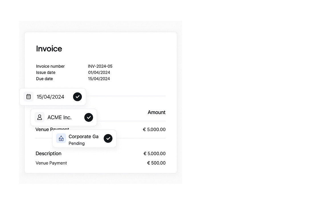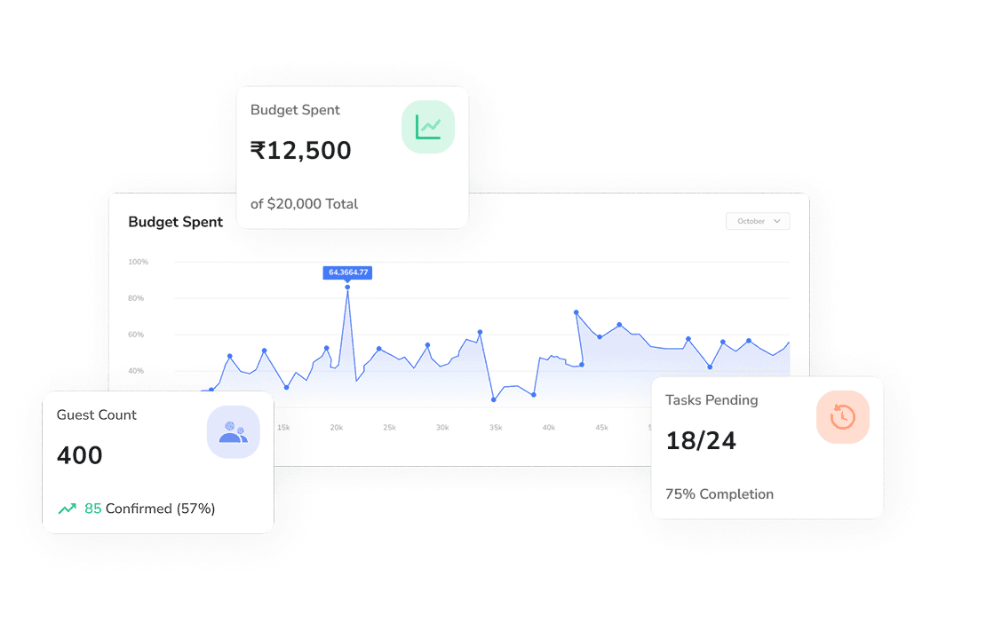 Estimate event costs, compare planned vs. actual spending, and identify leaks before they impact your bottom line. Get full visibility on margins and ensure every event stays profitable.